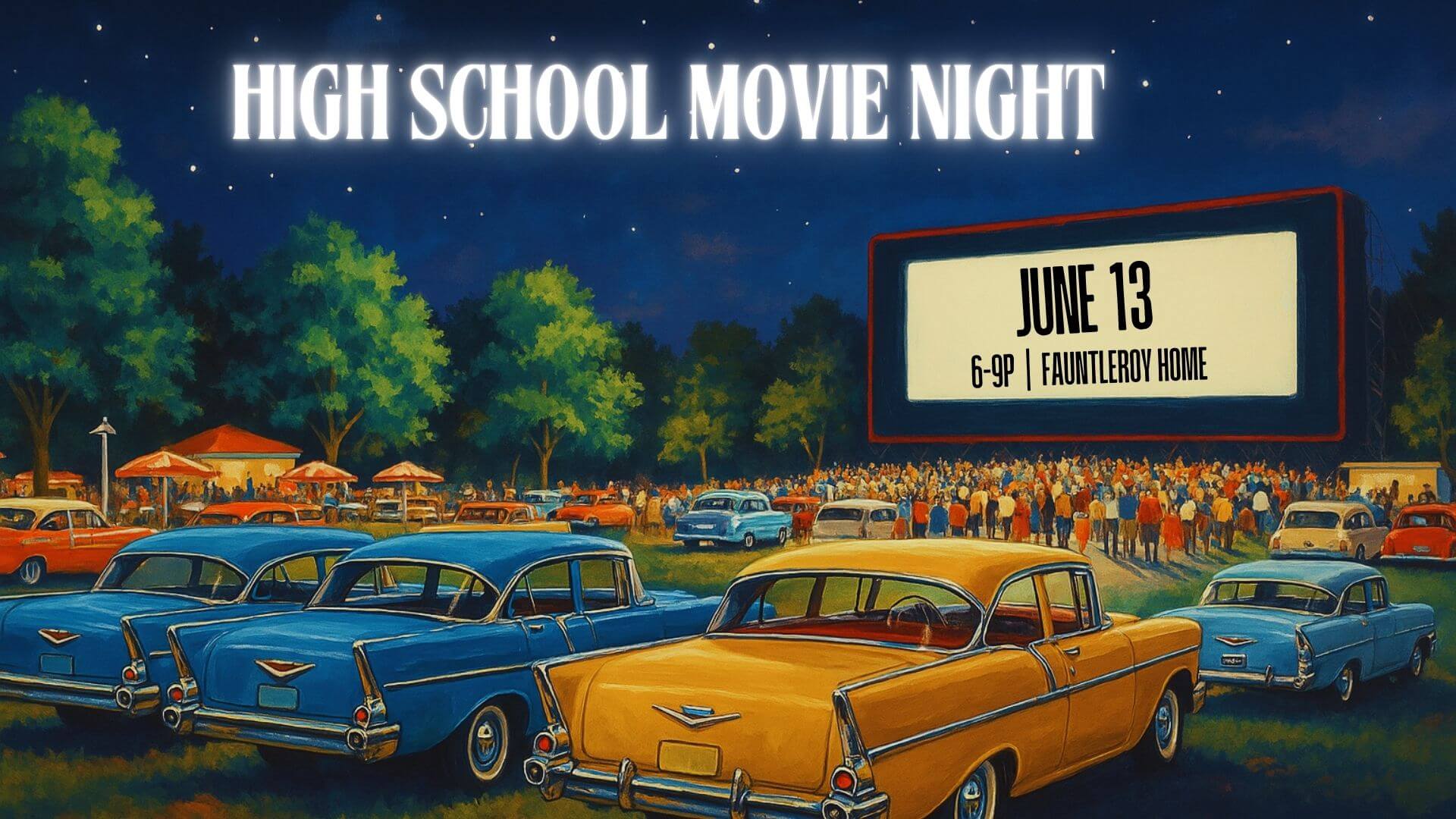 FeaturedOn June 13, all high school students are invited to a movie night at the Fauntleroys' house! The event will last from 6pm-9pm, and we will have food and snacks to enjoy during the movie.