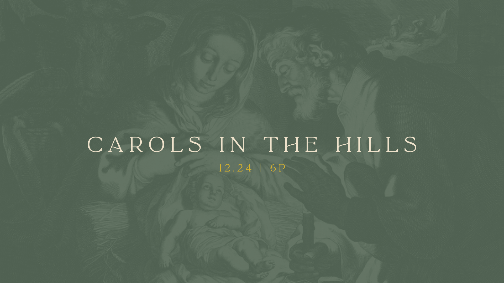 The Grove Church, 12/24 at 6-7:30p: Mark your calendars for our annual Carols in the Hills candlelight service! Come worship with us as we celebrate Christ’s first coming and joyfully anticipate his second. Childcare is provided for children ages three and under.